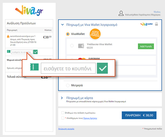 - Τα κουπόνια μπορούν να εξαργυρωθούν με online αγορά (πληρωμή με πιστωτική -χρεωστική κάρτα ή μετρητά) ή μέσω της mobile εφαρμογής Vivawallet.